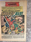 Staples attached at cover and centerfold. Wear around staples. Bottom staple at cover close to detaching. Book lies mostly flat. Heavy spine stress. |