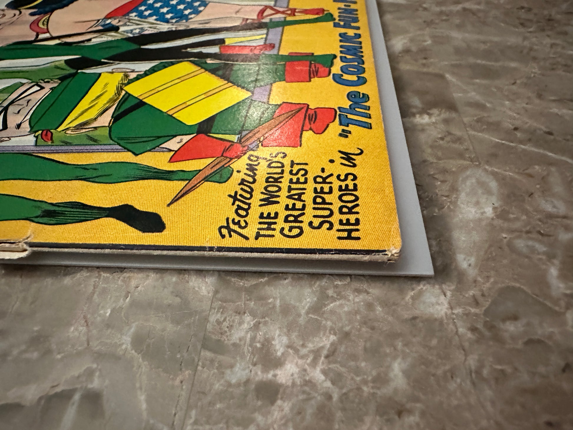 Medium denting/wear on the covers. Creasing in lower right corner of front cover that breaks color. Vertical crease on front cover that does not break color |