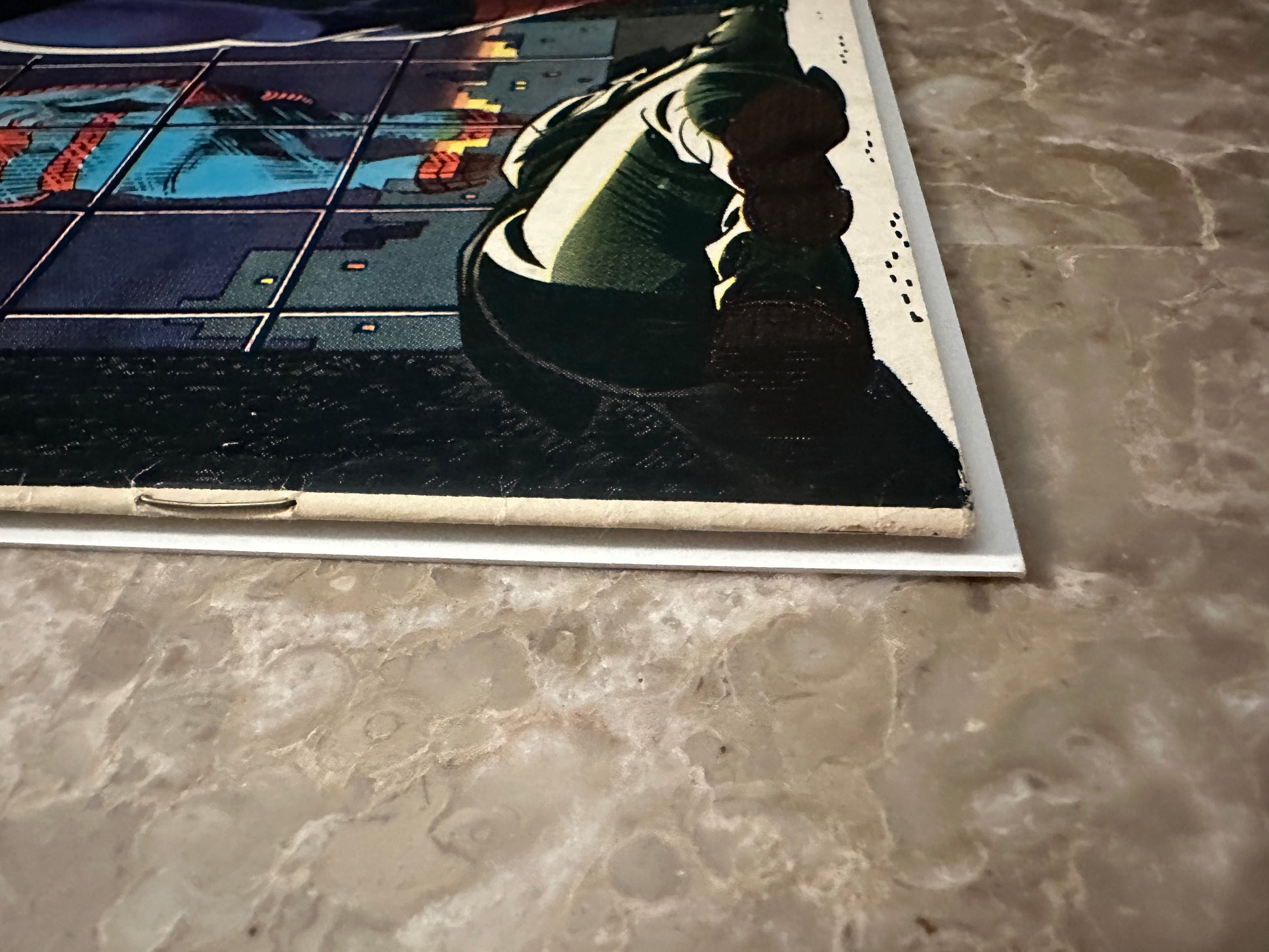 Minor denting on the covers overall. Color breaking creases in lower right corner of front cover. Longer color breaking crease on right edge of front cover. |