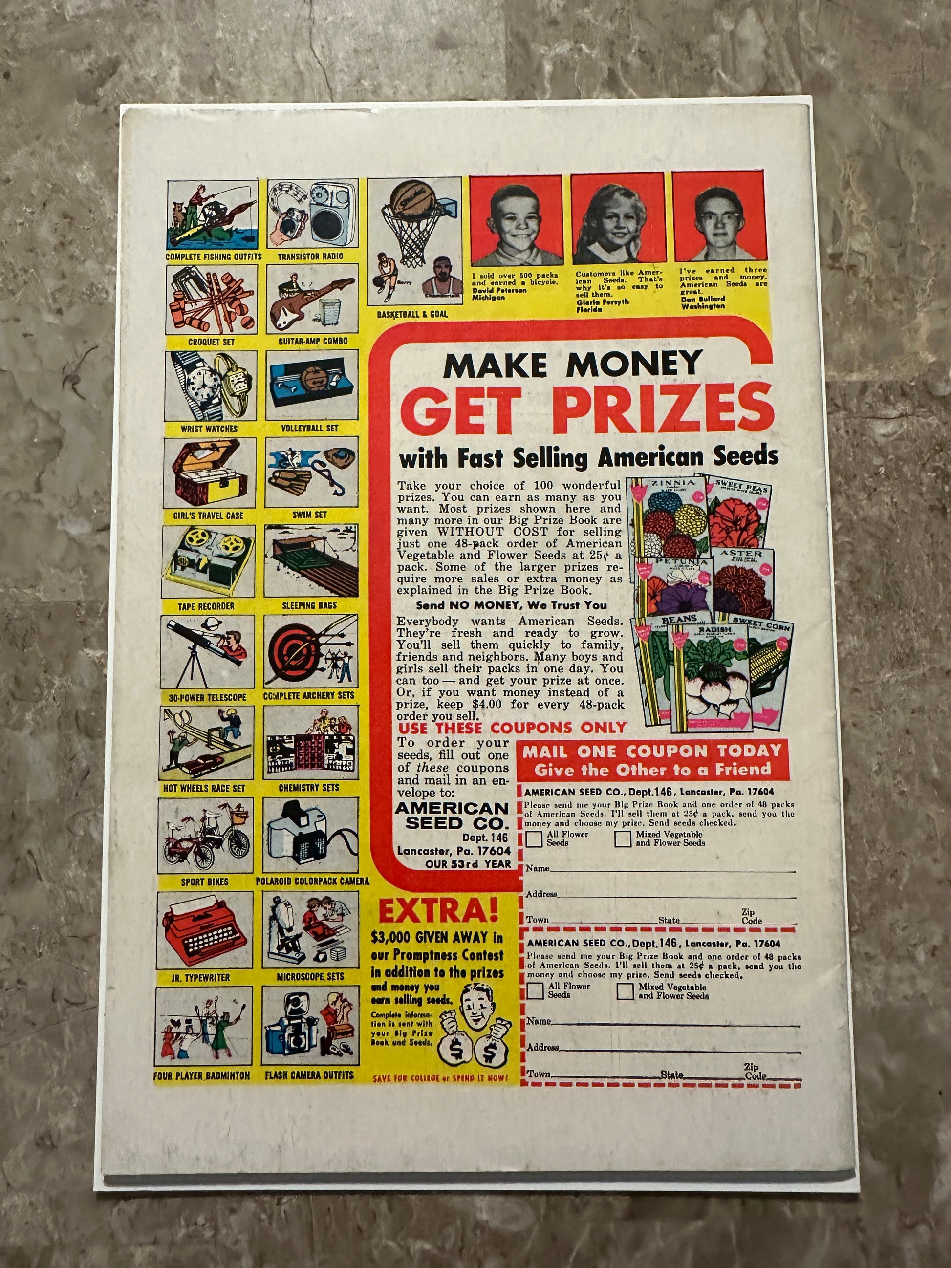 The front cover maintains excellent color and retains some of its gloss. The back cover is slightly off-white and mostly clean. |