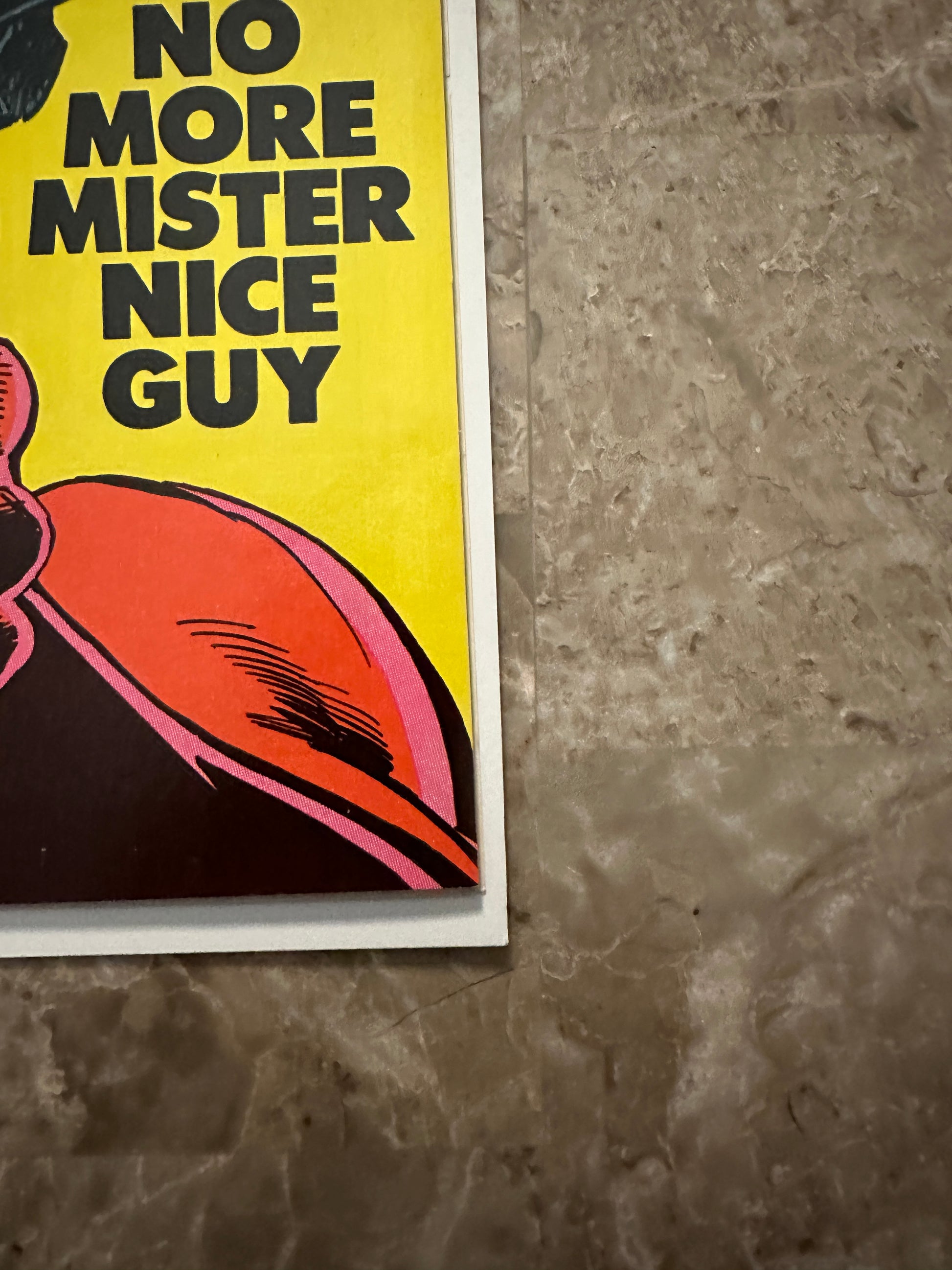 Staples secure at cover and centerfold. Minor to medium spine stress with a hint of color break. Book lies almost completely flat. |