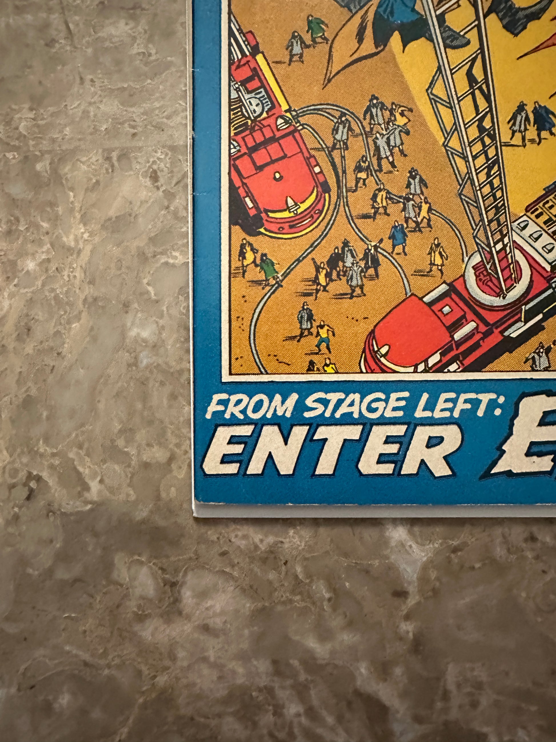 Staples attached at cover and centerfold. Minor to medium spine stress with a very small amount of color break. Book lies almost completely flat. |