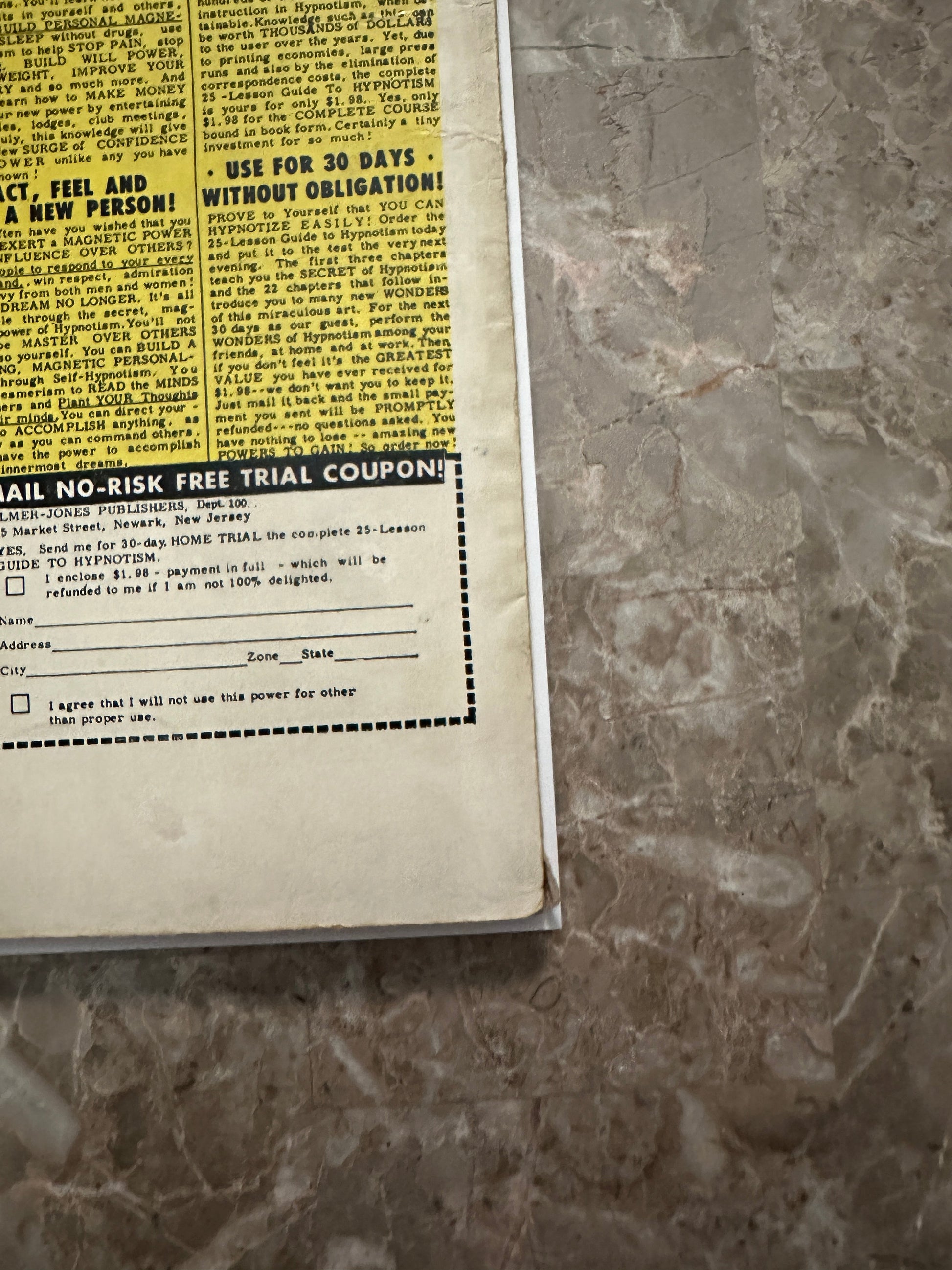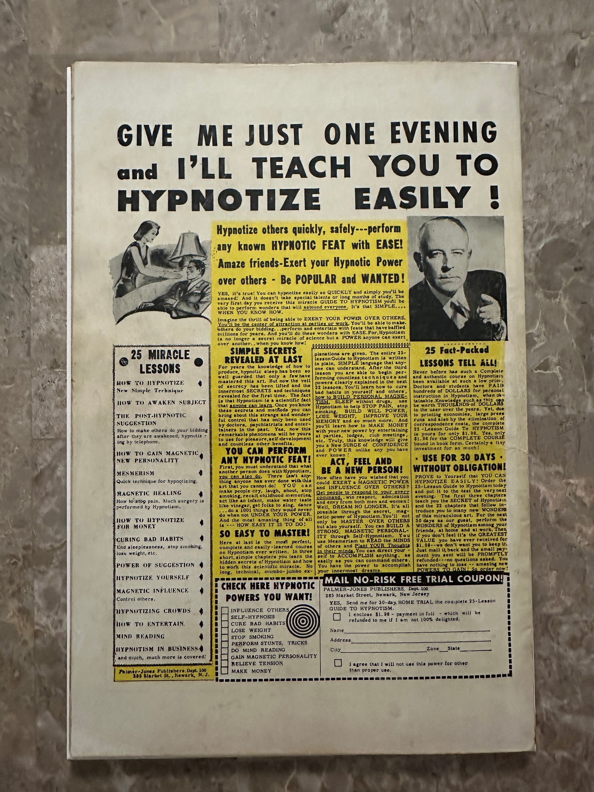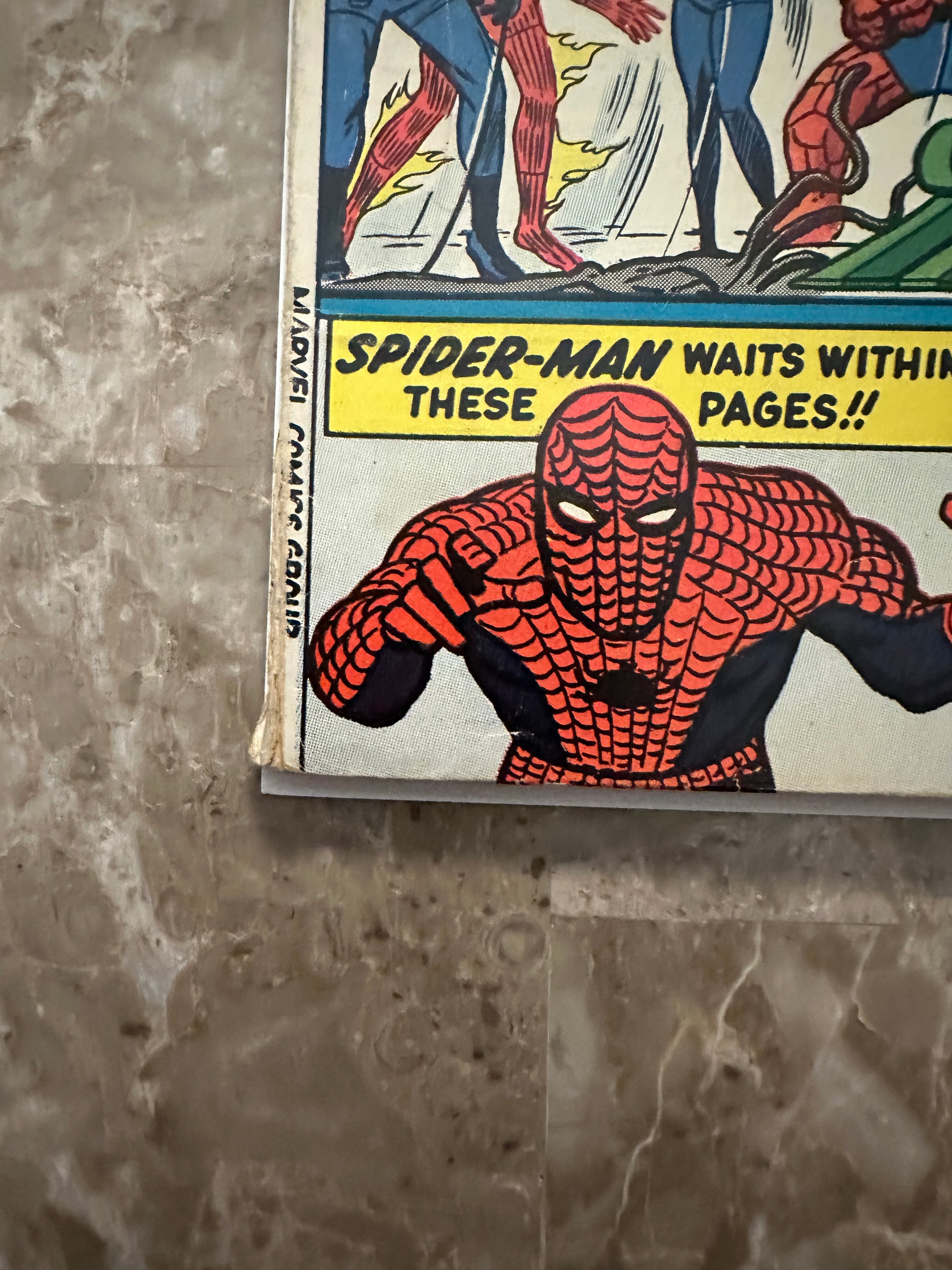The covers maintain great color and retain much of their gloss. The back cover is off-white and mostly clean. Faint stain to lower left of back cover that runs into the pages |